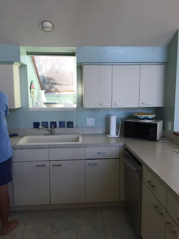 The house itself is well designed, with the bedrooms on the lower floor (keeping it cooler during the warm months), but a little dated (which we thought was really fun and charming, with their long vertical blinds not-terribly-large kitchen). But we were especially appreciative of it because half of our (extended) family stayed at a new home on the air strip just north of us. The owners (or managers) or that property actually had cameras set up so that when they showed up with four adults and four youths, rather than six adults (as they’d indicated on their application) the property managers texted or called saying that they didn’t expect eight people (two of them were under 12). My sister explained that two of them were supposed to stay at our property, which was totally fine because the owners of our property were really cool. Dogs are fine. Kids are fine. In fact, our 18 year-old son tried to move one of the golf carts while it was plugged in, ripping the plug from the transformer. I mentioned it to her, expecting to pay for the damage to it. but she said, “Don’t worry about it. Stuff happens.”
